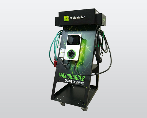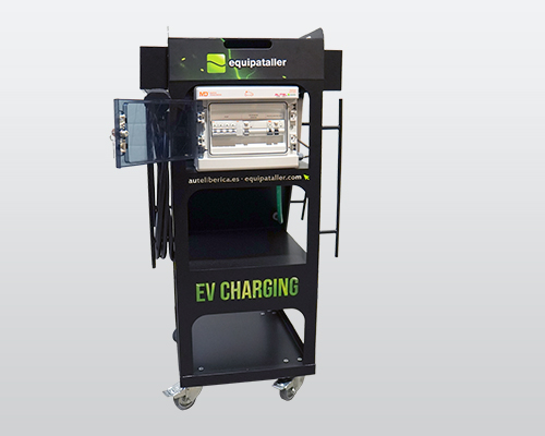 Incorpora un cargador de 22 Kw con pantalla LCD, preparado según la normativa IT-BT-52, lo que permite su uso inmediato sin obras ni instalación permanente. Su diseño en formato carro facilita el desplazamiento por toda el área de trabajo, ofreciendo una puesta en marcha inmediata allí donde se necesite cargar el vehículo.